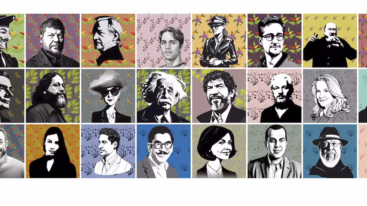 Minting Now. 2048 Genesis Collection NFTs of Cypherpunks and other figures on unique wallpaper backgrounds.
